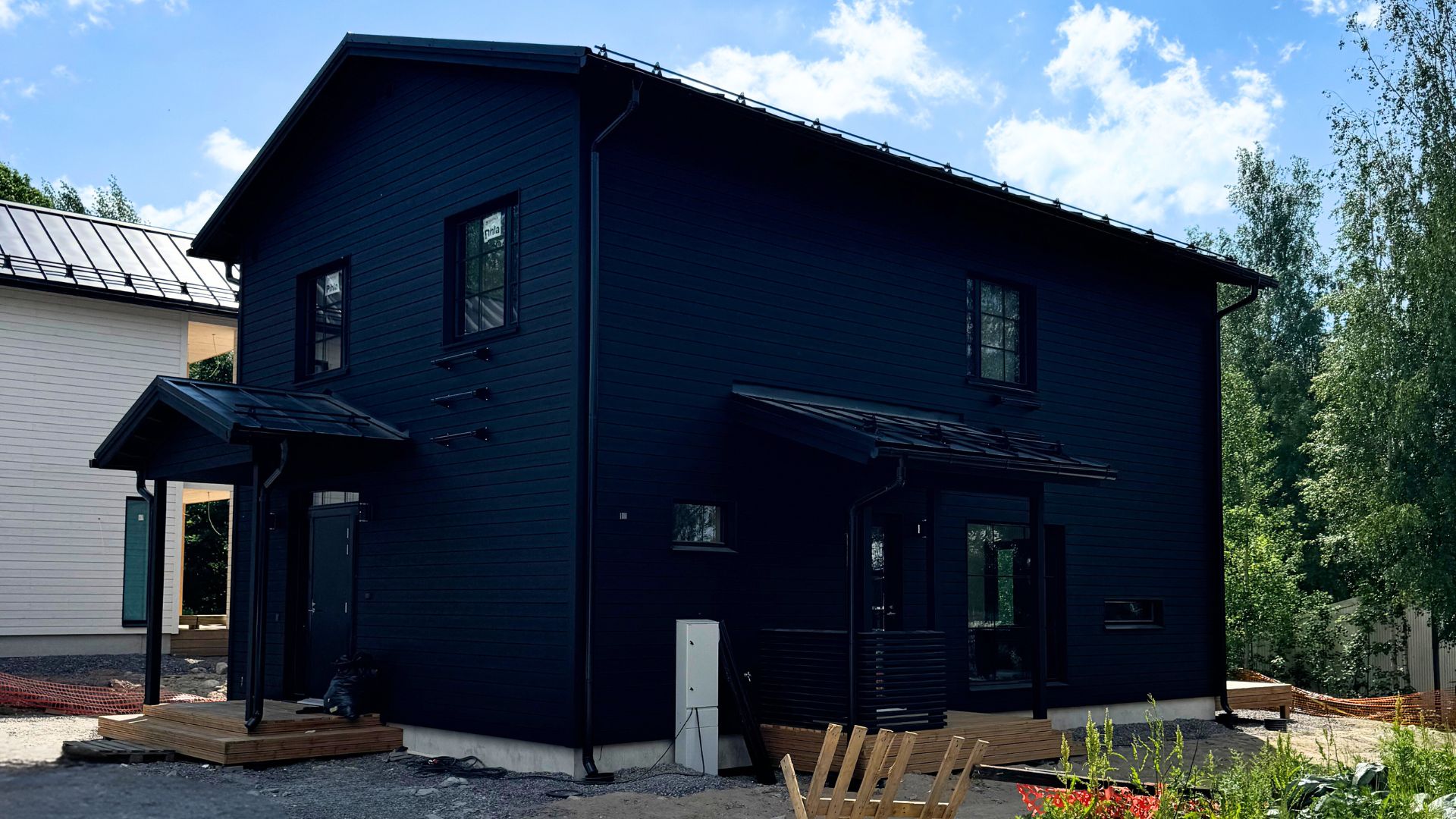 Esittelyssä upea mustanpuhuva ja moderni Dekotalon muuttovalmis omakotitalo Helsingissä. Oleskelutilat ovat hyvin kutsuvat ja hattuna vielä korkea tila olohuoneessa, joka viimeistelee oleskelutilojen avaruuden. Materiaalivalinnat on tehty tummanpuhuvilla sävyillä ja myös asukas on esittelyssä paikalla. Kannattaa tulla tutustumaan ja kysymään rohkeasti juuri rakentaneen asiakkaan kokemuksia!