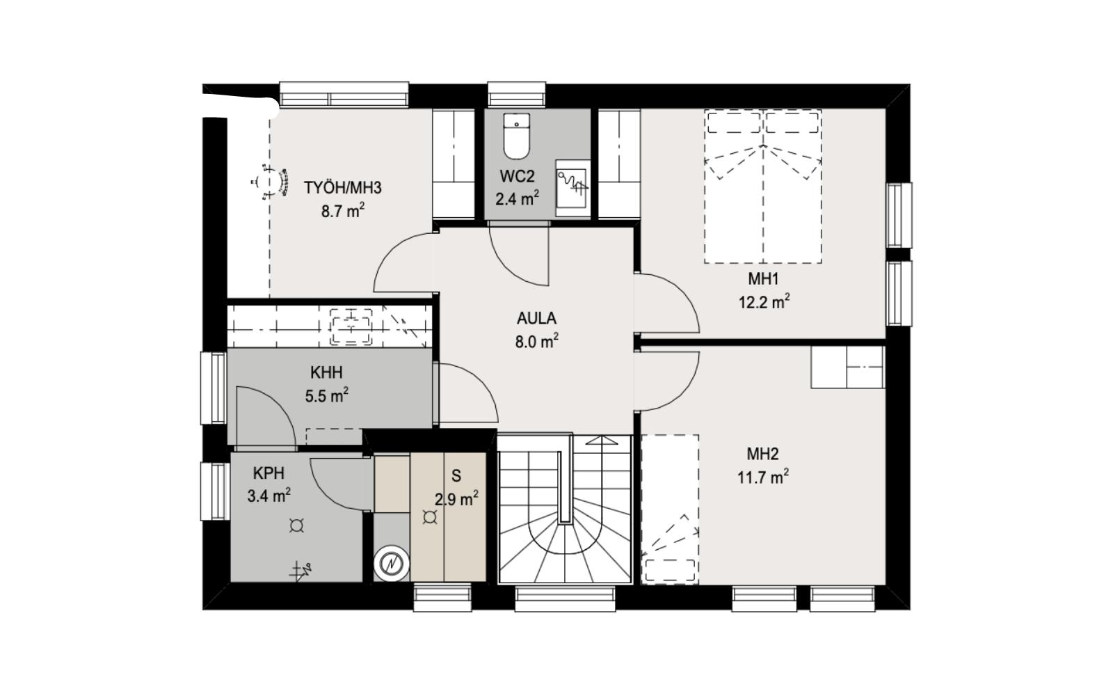Pieni kaupunkitontti ja haaveissa neljän makuuhuoneen talo? Dekotalon uutuusmalli Deko 135 tarjoaa ratkaisun! Tässä talomallissa ei todellakaan ole hukkaneliöitä, vaan tilankäyttö on erittäin tarkkaan mietitty. Saarekkeella varustettu olokeittiö toimii tämän kodin keskuksena ja yläkerrassa on perheenjäsenille omaa rauhallista tilaa lepoon ja työskentelyyn. Talon päätyyn on myös helppo lisätä taloon kytketty autokatos-varasto.